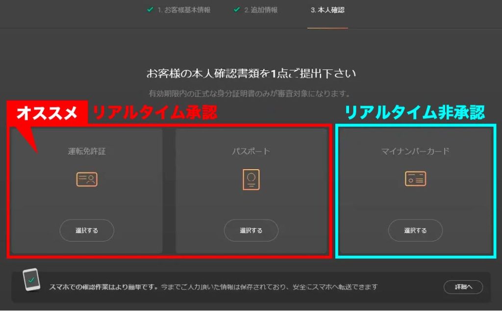 身分証明書がきちんとアップロードされていないと口座開設を受け付けてもらえません。