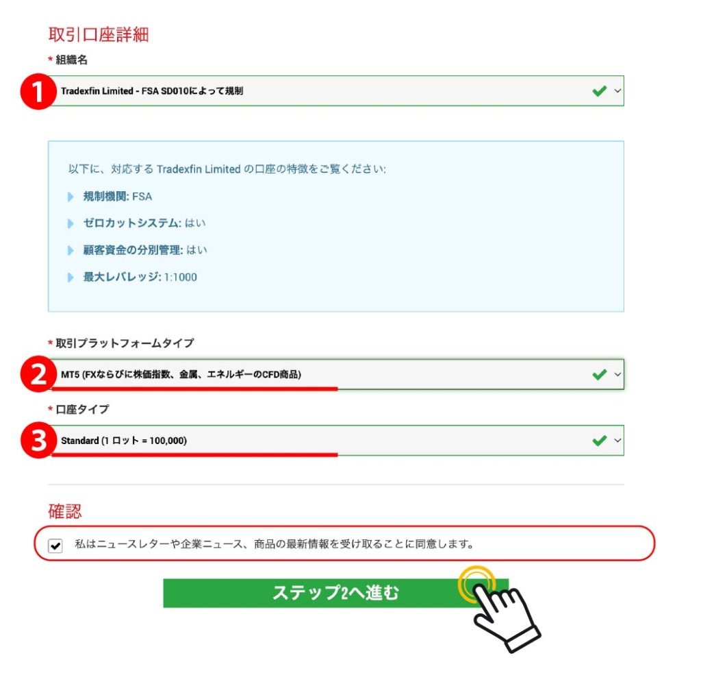 | 3.口座タイプ | Standard口座を選択(全てのボーナス獲得が可能) |