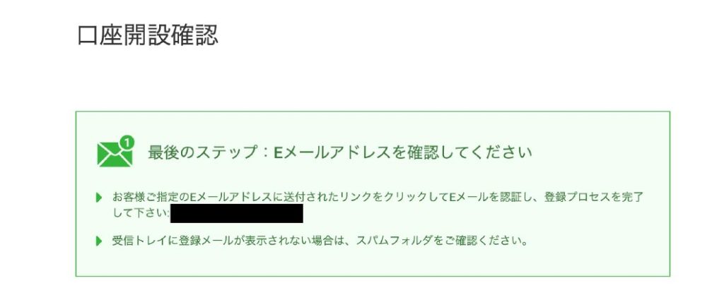 口座開設が完了するとすぐに登録したメールアドレスにメールが届きます。
