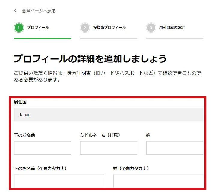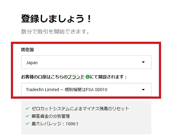 | レバレッジ | 1:1000を選択して下さい。 (レバレッジは口座開設後変更できます) |