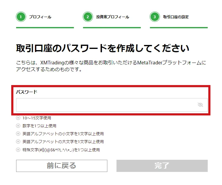 口座のパスワードを決定します。