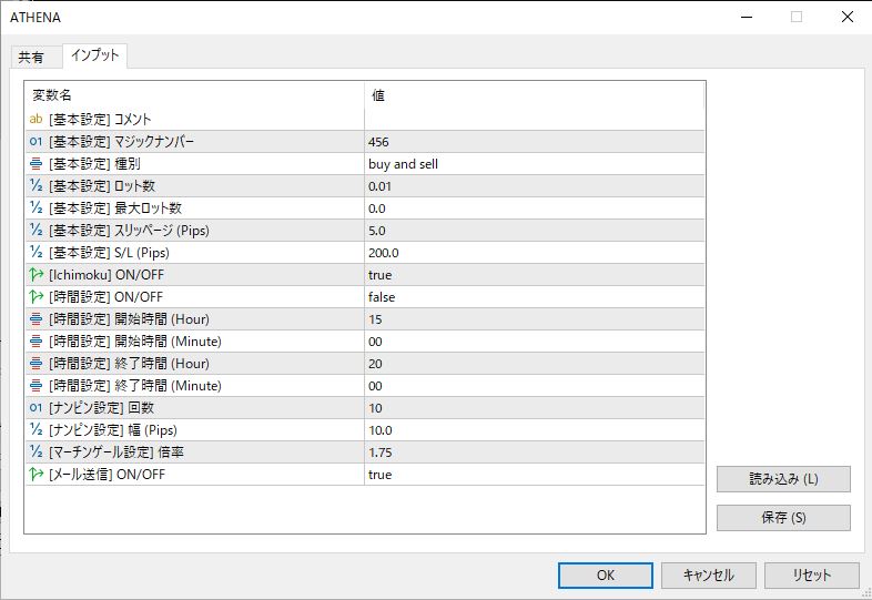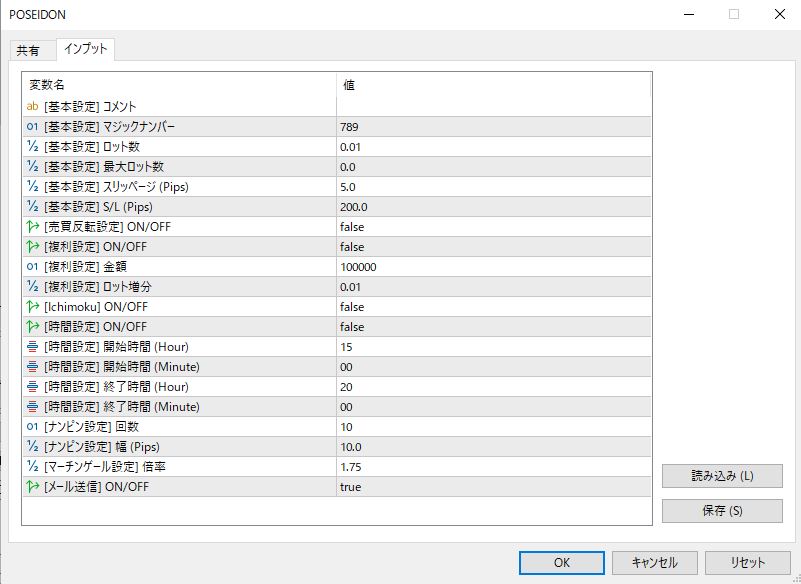| マジックナンバー | 複数EAを運用している場合EA毎にマジックナンバーを変更 |
