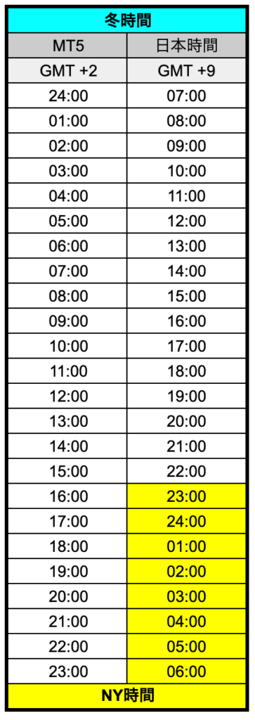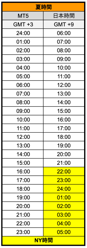 MT5時間早見表