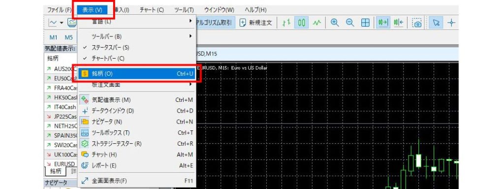 通貨ペアが表示されてない場合