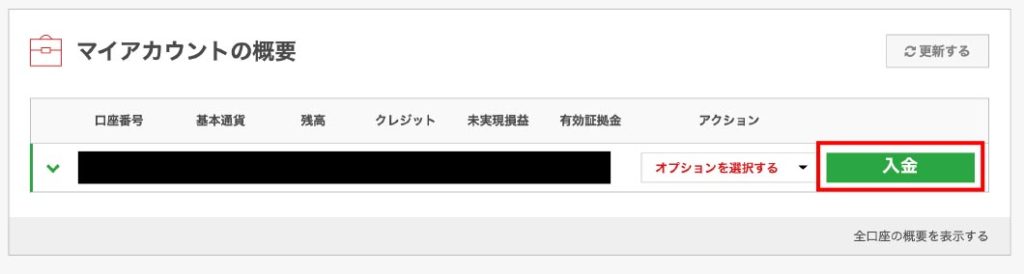 ログイン後画面上の「入金」をクリックします。