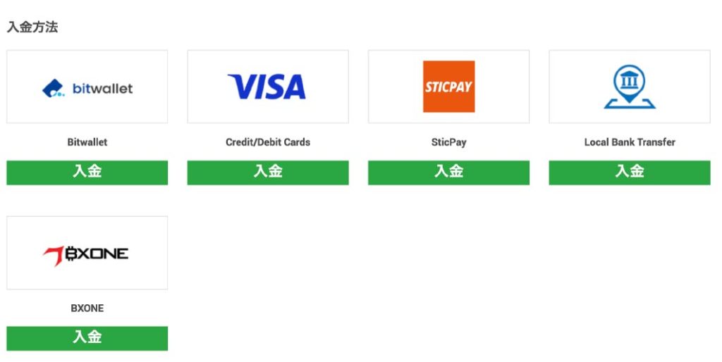 | 入金方法 | 入金手数料 | 最低入金額 | 入金反映およそ |