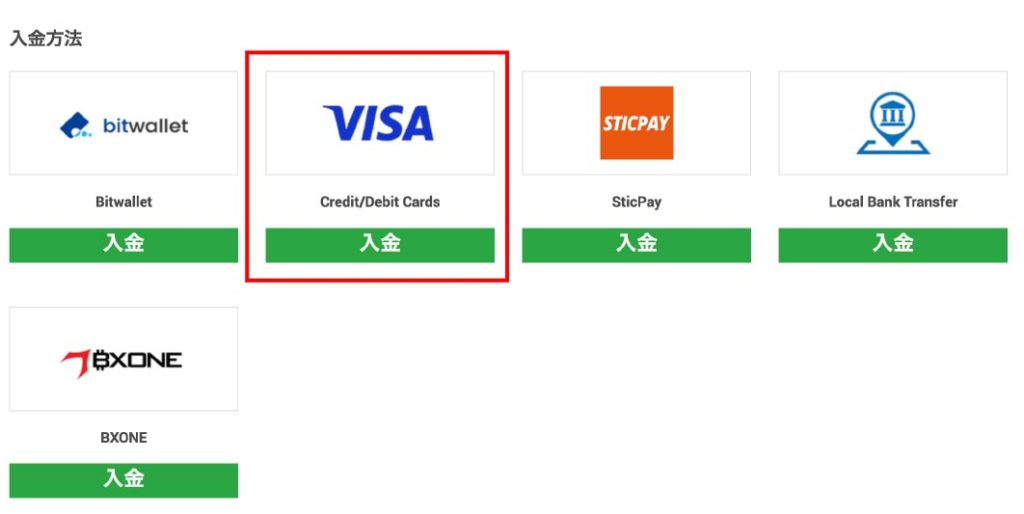 ※VISA以外のクレジットカードの場合Bitwalletでカード登録をし入金