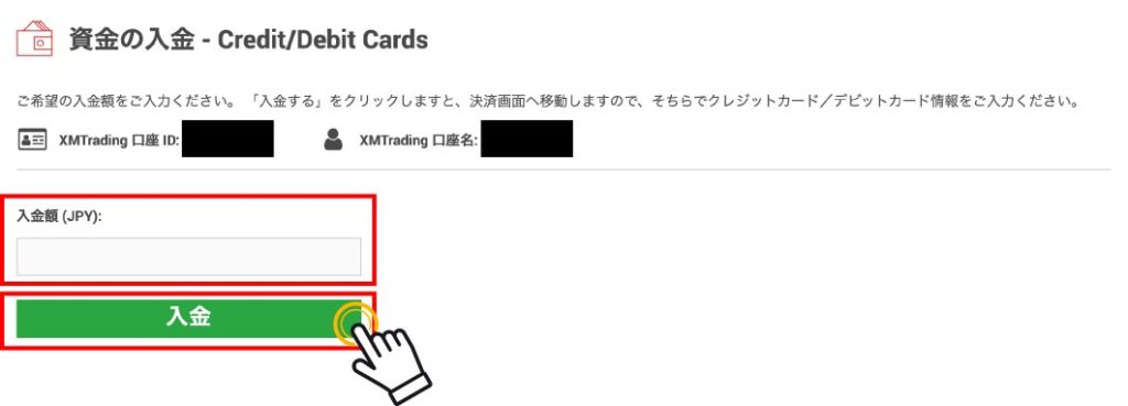 希望の入金額を入力