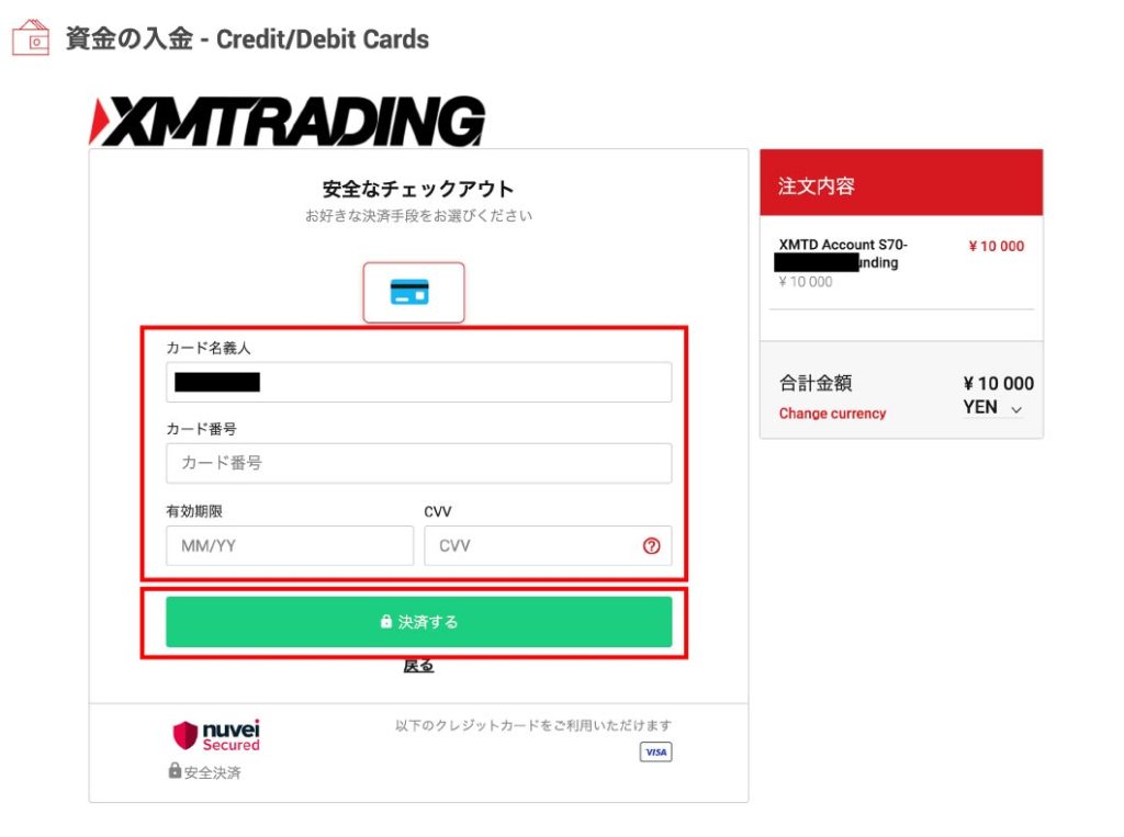 クレジットカードでの入金の場合
