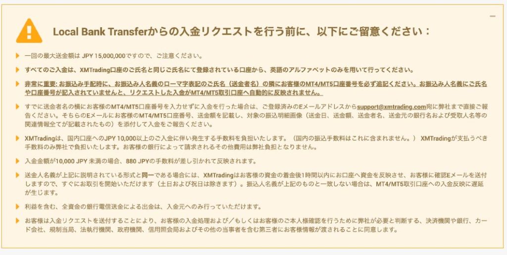 | XM口座登録名 | 入金先のMT4orMT5口座番号 |