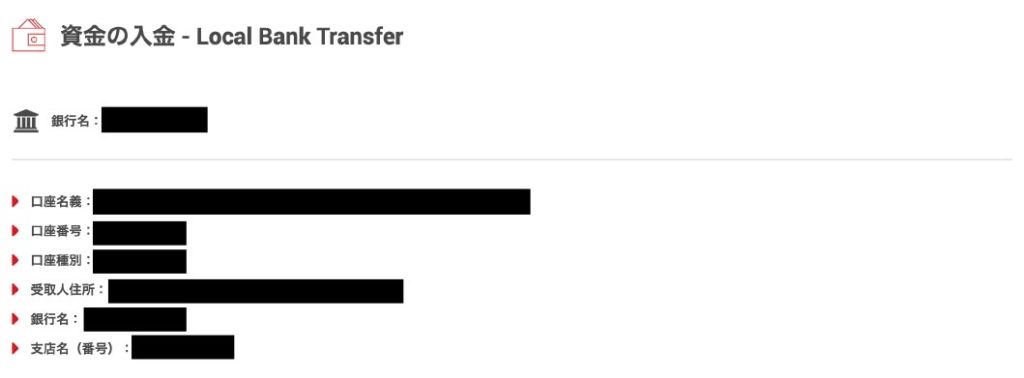 国内銀行振込での入金の場合