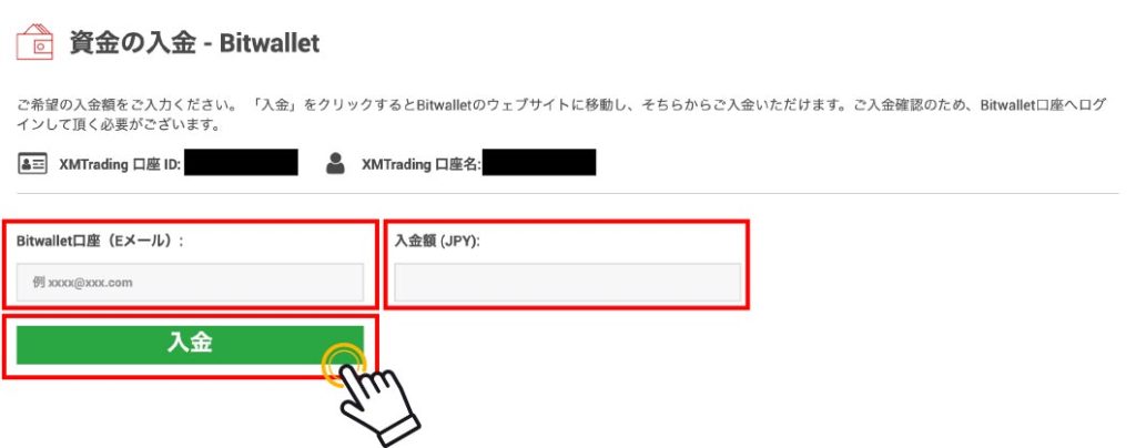 bitwalletの入金の場合まずはbitwallet(オンラインウォレット)を登録しbitwalletの口座に入金しXM口座に入金できます。